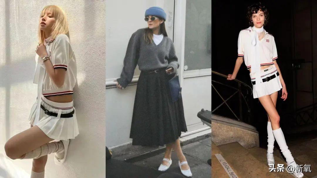不同廓形修身衣搭配薄纱迷你裙,再辅以堆堆袜套和芭蕾舞鞋烘托甜美氛围。