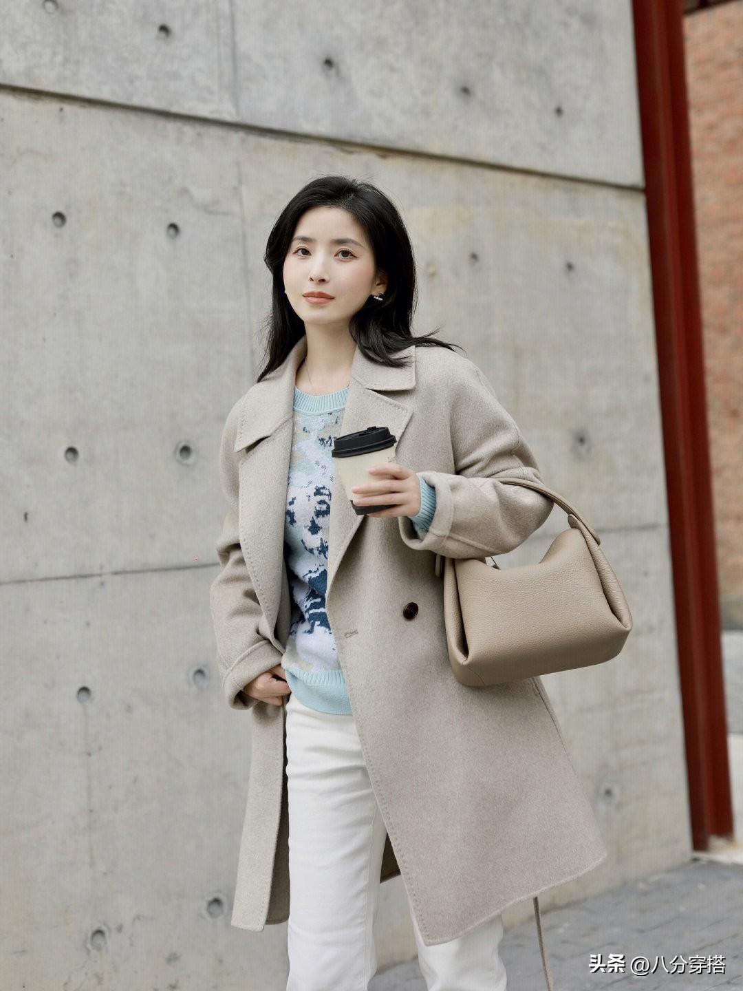 如果生活的地方温度比较高,而且。自己也不是那么怕冷的话,那我们也可以尝试一下更加显瘦时髦的毛呢大衣。相比羽绒服来说,大衣会更加的利落显瘦一些,同时颜色款式选择多样,可以为我们的穿搭提供更多的可能性,气质上也更成熟优雅一些。