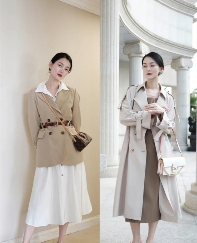 长款风衣可以搭配各种内搭而呈现出不同的视觉果,如果驾驭的是在夏天频繁出场的连衣裙,也能形成特别知性的穿搭,对气质的增强作用很显著。