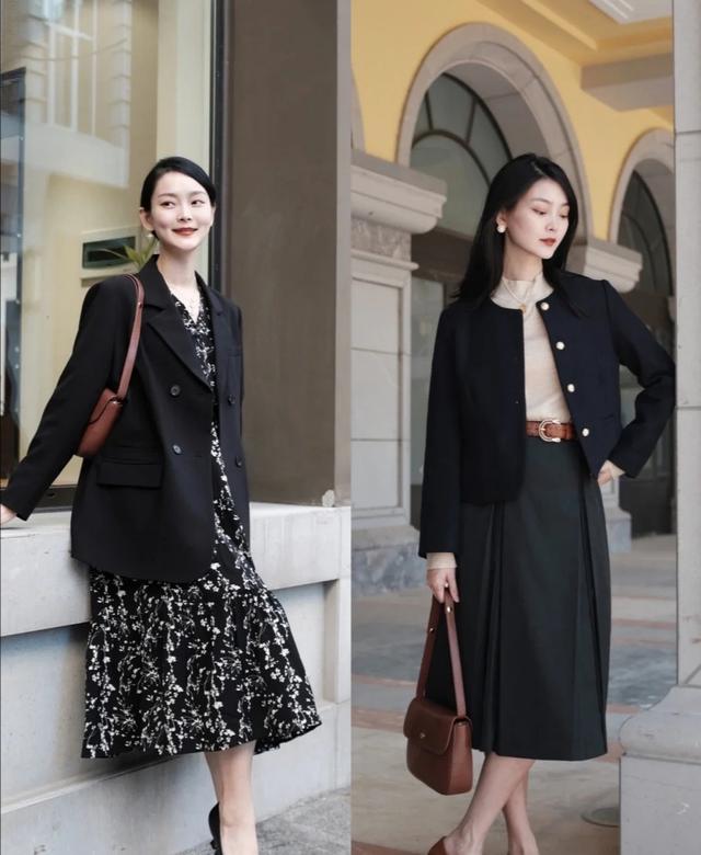 黑色西装始终是不同年龄段的女性都会考虑到的一大单品,它没有搭配方面的障碍,更没有配色方面的考验,可以帮助那些身材普通的女性弱化上半身的厚实感,在里面配合裙子或者是简单的衬衫,都会特别的和谐。