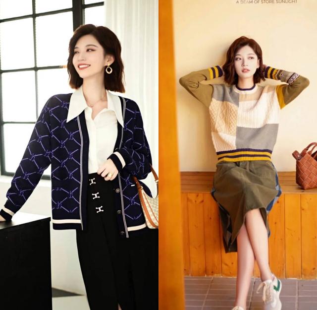 样式偏薄的衬衫,不能在深秋的时候使用,可以在外面叠加一件针织单品,构造出舒适感满满的造型,可以是色调暗沉的针织服装,也可以是色彩丰富一点的开衫,更有活力气息。