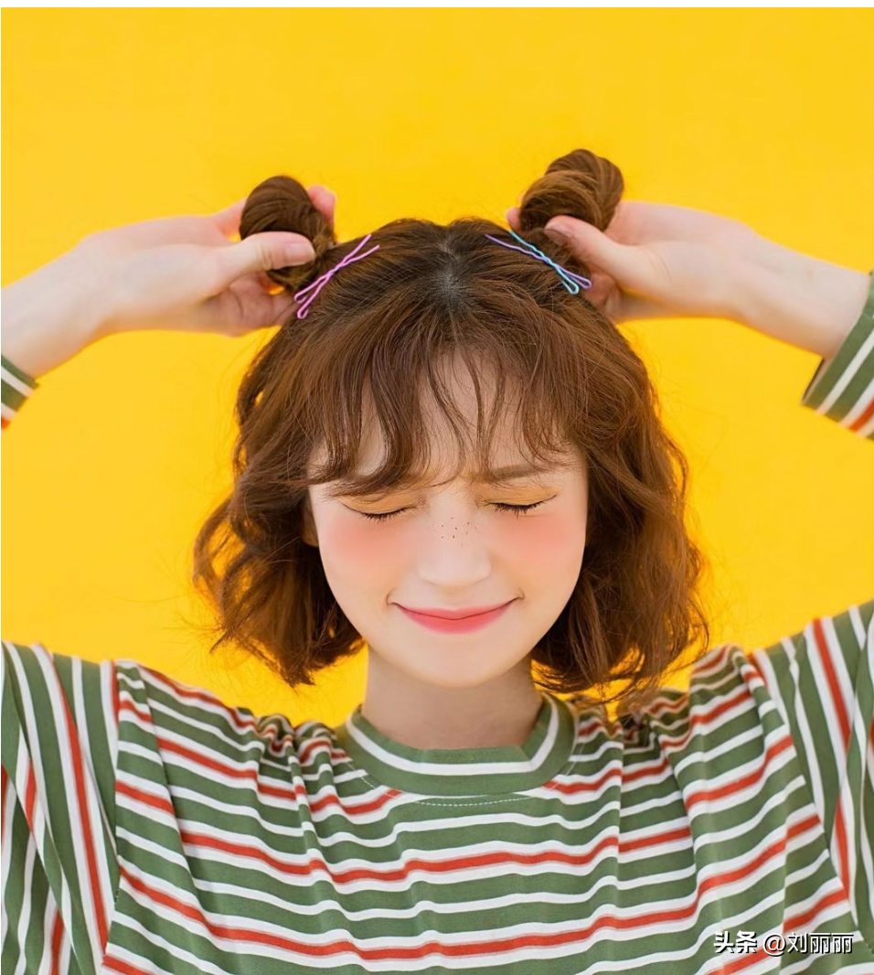 全头卷烫发有时候容易显老气,我们不妨学学这个姐妹,扎上两个丸子的造型,瞬间的减龄又可爱,今天的发型就显为大家分享到这里,你心动的是第几款?欢迎留言,想看更多时尚流行发型,别忘了关注我。