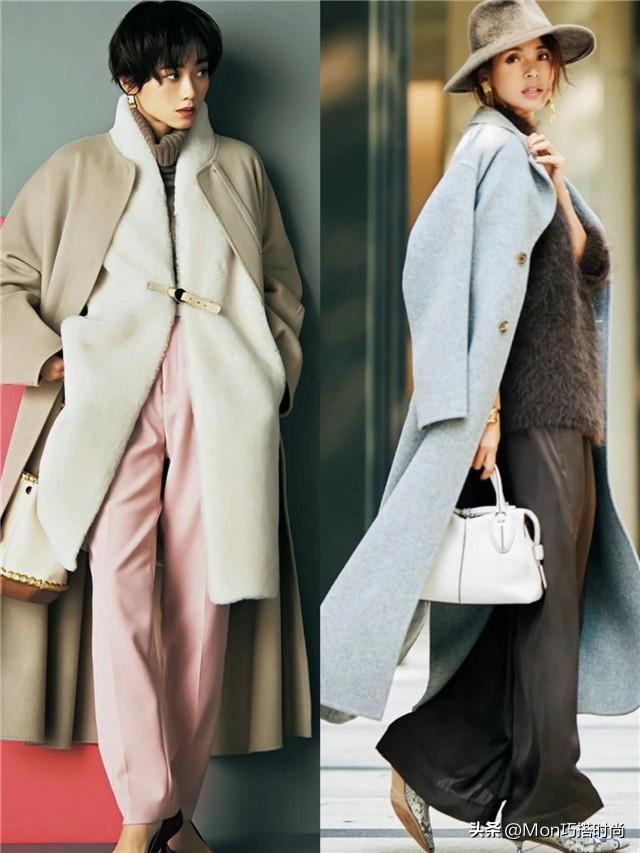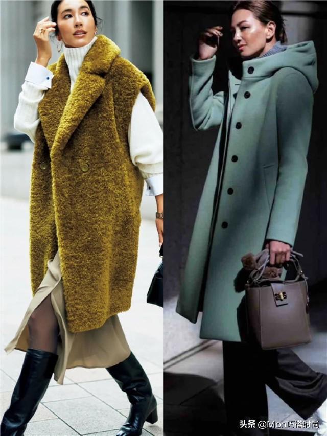 所以在秋冬季节就特别流行长羽绒服,长款大衣,这些单品的搭配都有利于保暖。