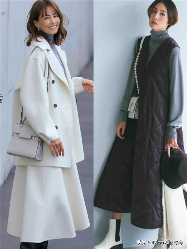虽然说长款服装对于我们的身材修饰果好,但是大家也不要一味地就去挑选特别长的衣服,因为衣服并不是越长越好,尤其是冬日选择外套,如果长度超过脚踝,可能就压低了身材,导致沉闷感。一般这些日本女人在穿衣时都会遵循过膝不过踝的原则,长度在膝盖附近或者是膝盖下方一丢丢,但不遮住脚踝,这样会显得更利落。