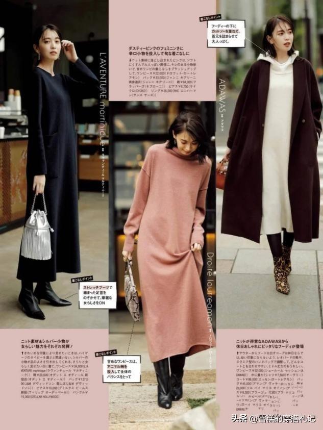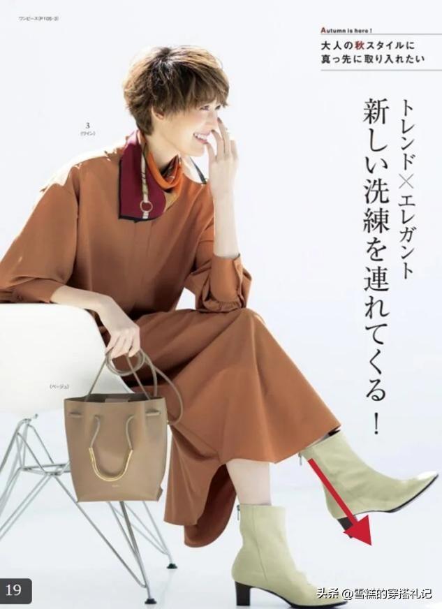优雅感十足的衣服,穿起来更加出彩。比如优雅的针织连衣裙,配上皮质高级的短靴,有气质,如果想要衬托好肤色,可以选择暗一些的彩色款,有棕色、褐色等深色调的鞋子衬托,增添了更多的优雅,不会太过浮夸。