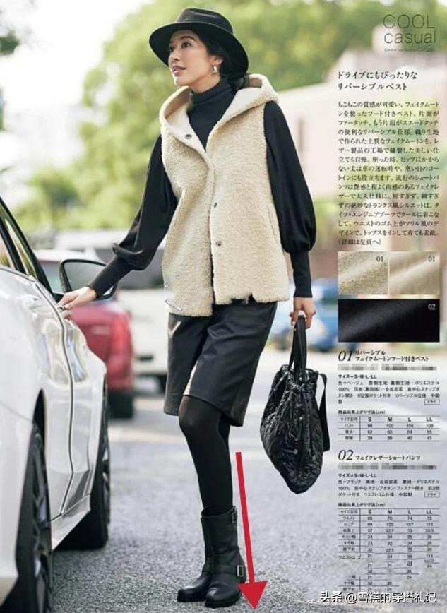 厚底的鞋子有些复古摩登感,穿起来很时髦,但鞋底太厚,会显得整个鞋子有些笨重,看起来也会降低个子。尤其是那些鞋头圆润、底子加厚的鞋靴,给人很蠢的感觉。