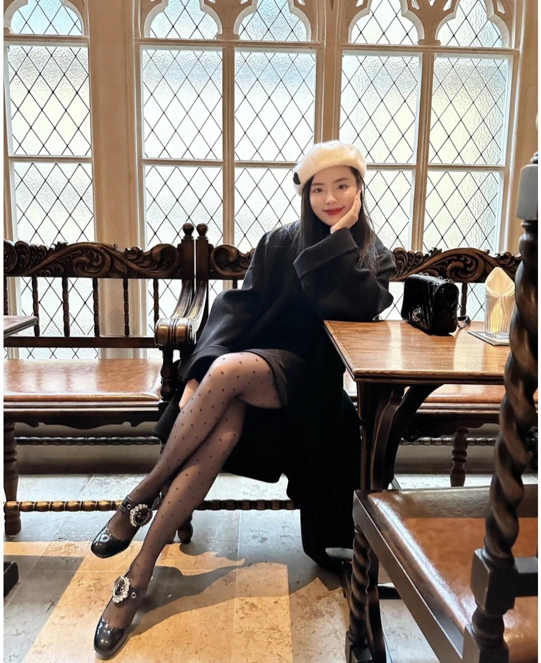 这件浴袍式的黑大衣好绝,宽大的版型设计让人穿上有股慵懒风,玛丽珍鞋也是多年前囤的,这两年愈发的流行。搭配丝绒半裙和波点丝袜,一整个复古的味道。