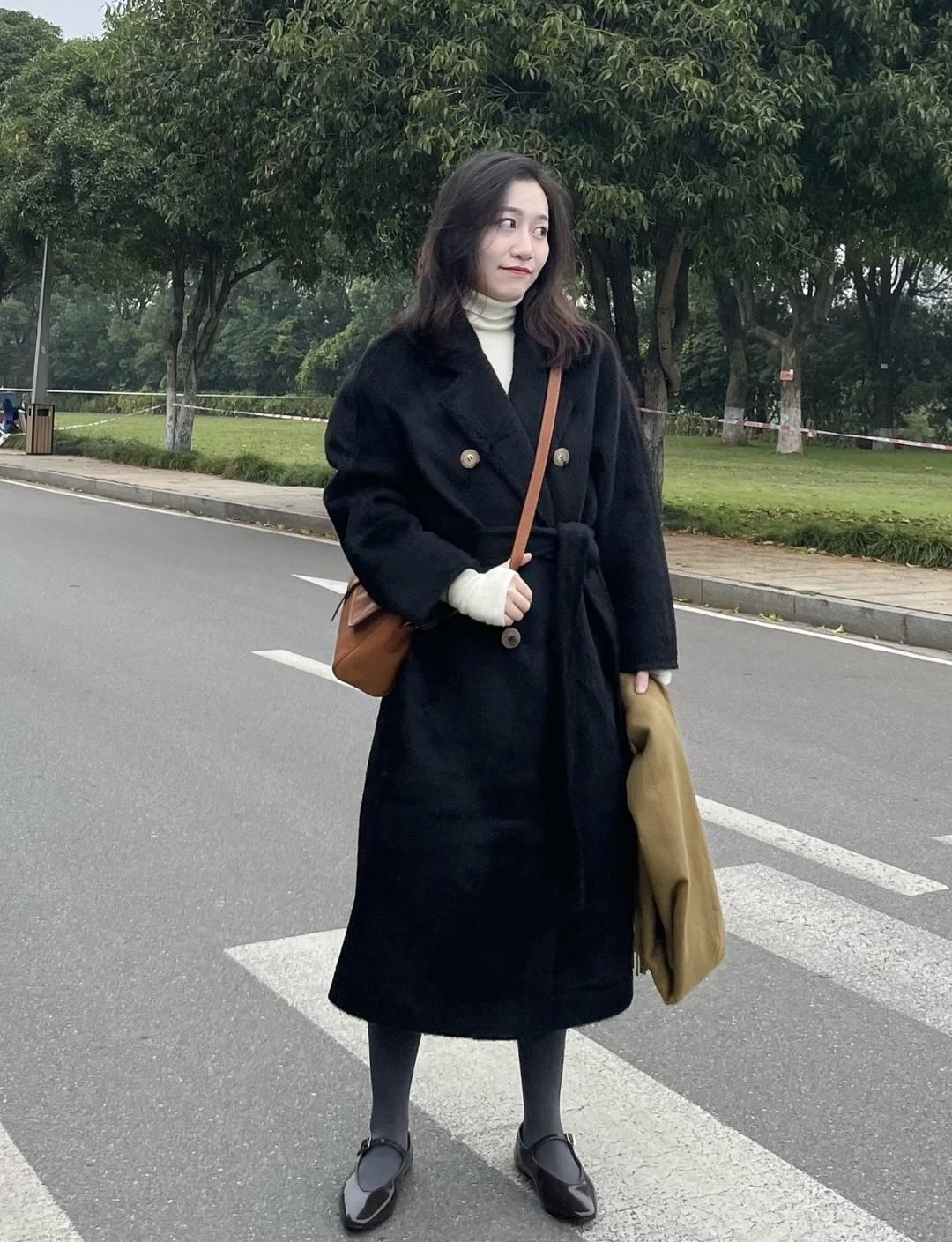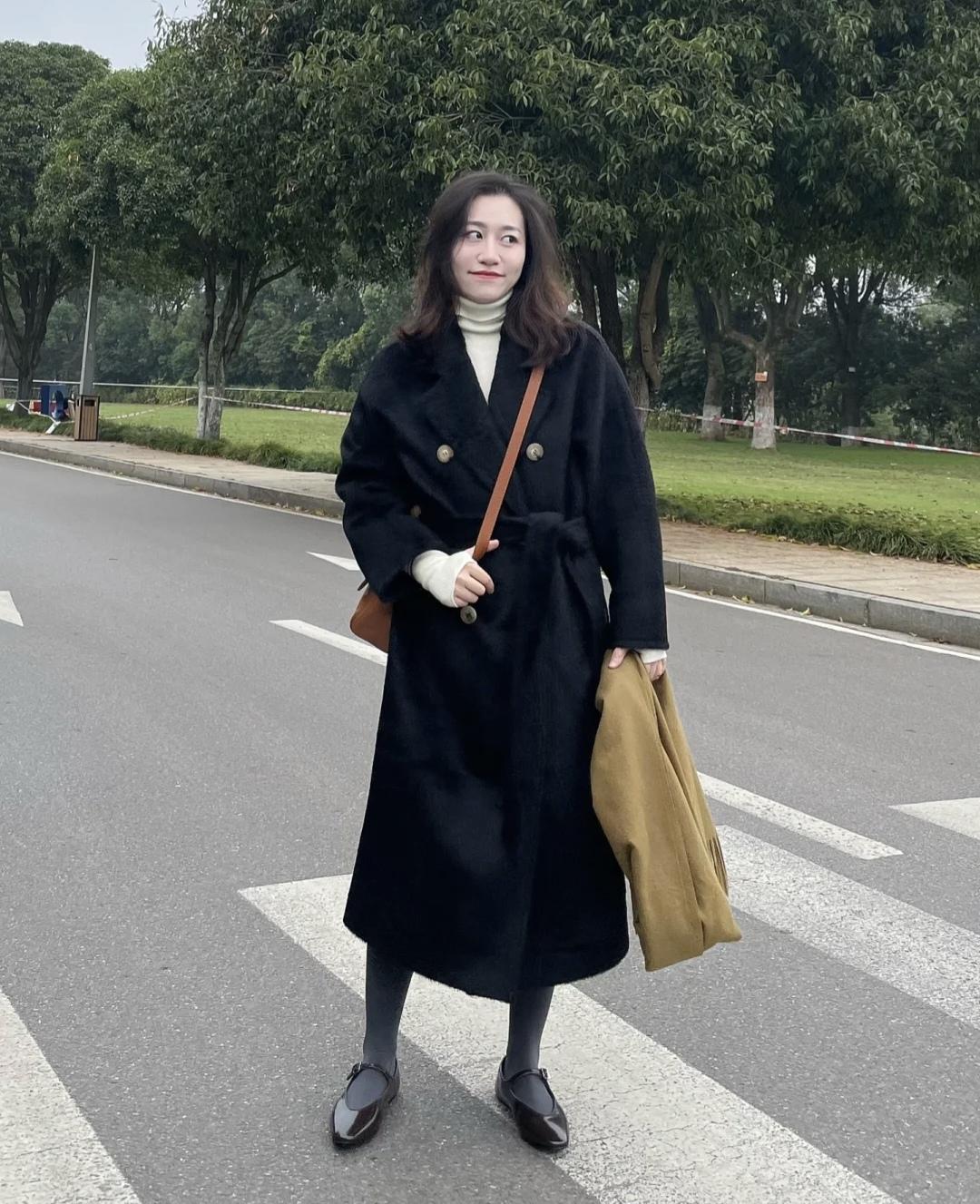 暖洋洋的冬天真的讨人喜欢,这就是冬日爱的大衣款式,穿不腻的黑色浴袍大衣,小个子女生也可以放心穿的长度,内搭白色高领毛衣+修身牛仔裤,一套显瘦显高又藏肉,内搭叠穿的羽绒马甲也不会冷。