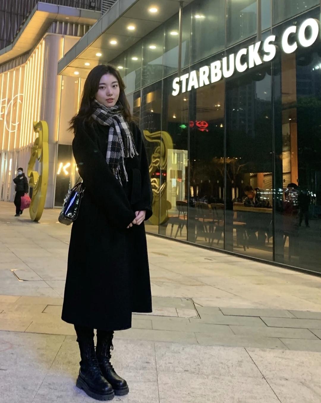 这身搭配谁见了不说一声气质!终于买了心心念念的黑色浴袍款大衣,可以作为新年战袍穿,长度小小腿位置不压身高,搭配修身牛仔裤和马丁靴,格纹围巾点缀,一套简约高级。