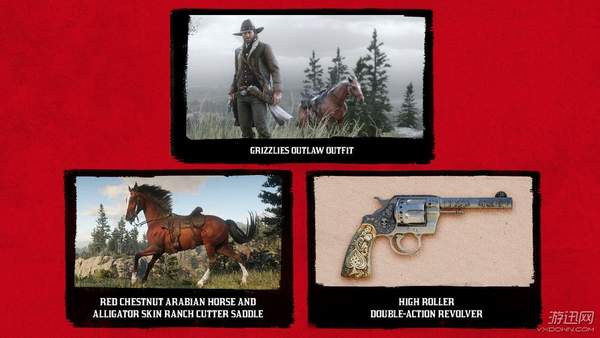 还有仅能在11月公布的《荒野大镖客ONLINE》使用的红栗毛阿拉伯马(拥有良好的速度和操控性)、鳄鱼皮牧场雕花马鞍(增加健康和耐力)以及“豪客”双动左轮手枪。