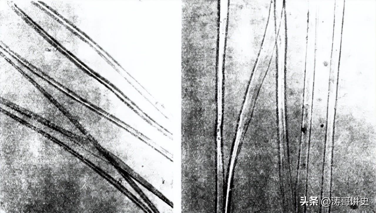显微镜下马王堆出土的丝绵袍与现代桑蚕丝纤维比较