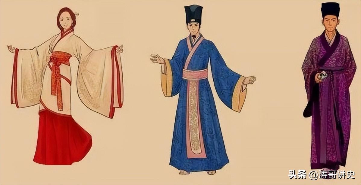 相比之下,中原周边的少数民族都采用“左衽”。所以当年孔子说:“微管仲,吾其披发左衽矣”。意为若没有管仲抵御住蛮族的进攻,炎黄子孙就将被野蛮人统治并同化,不得不披散着头发、穿着“左衽”的衣服。因此,“右衽”是汉民族区别于其他少数民族的一个重要特征。