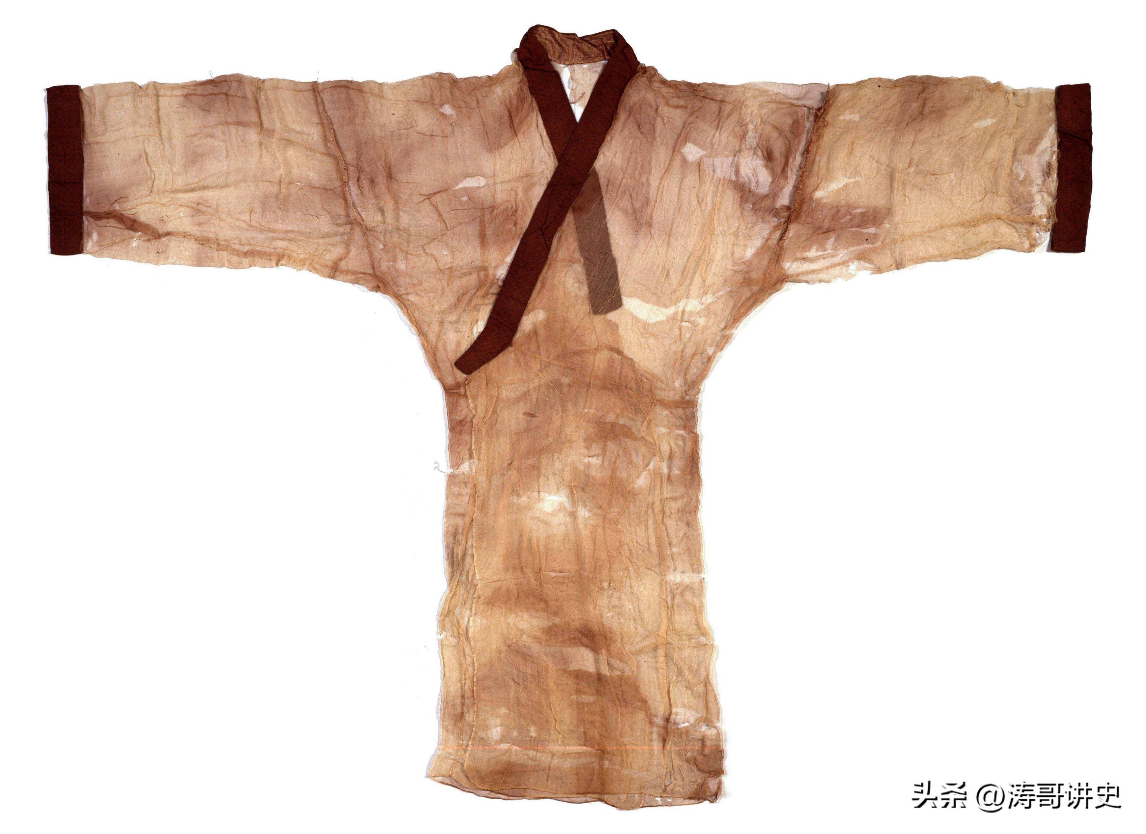 所谓襌衣,是汉服的一种款式,为贵族平日穿的单层罩衣。因为是罩衣,所以一般做得比较轻薄。这两件襌衣长1.28米,一个身高1.7米的男子穿在身上,衣服的下摆接近脚踝。