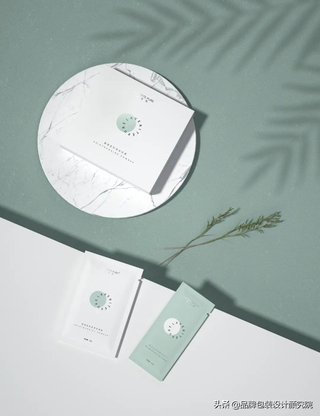 图形是视觉语言与外交流的重要媒介,而圆形因为没有棱角的特殊性,总会给人以柔和的视觉体验。包装排版上,将圆形色块置于画面中央突出产品的焦点,协调画面整体性,同时将品牌英文名称处理为环状,放在绿色圆形色块之上,画面更为平衡,同时增加品牌印象。