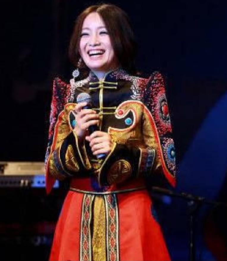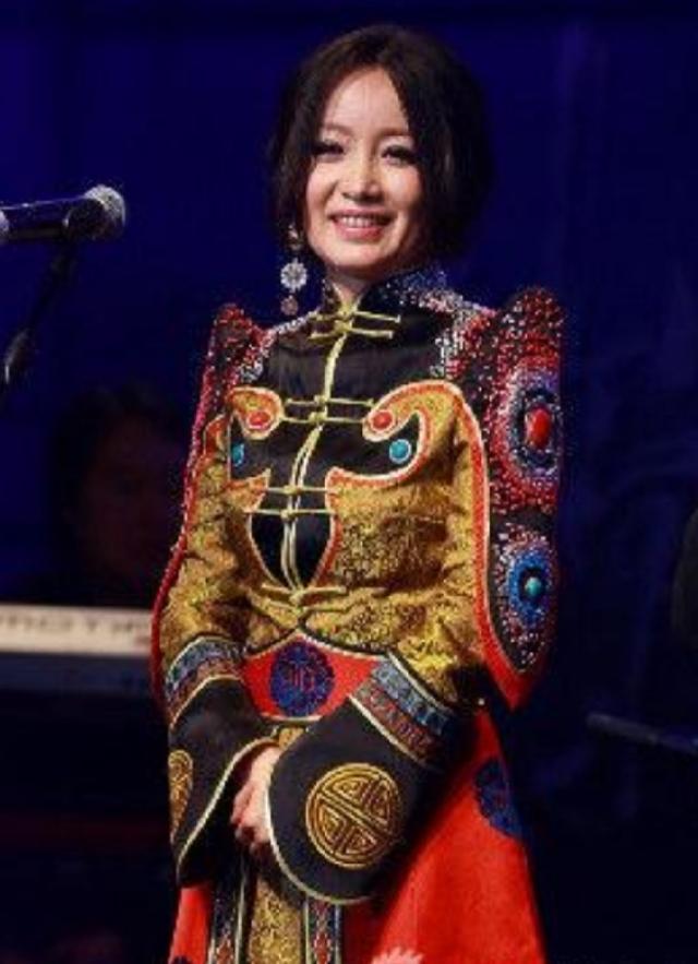 斯琴格日乐穿蒙族的衣服唱歌真美,显示了蒙族衣服的独特风格。