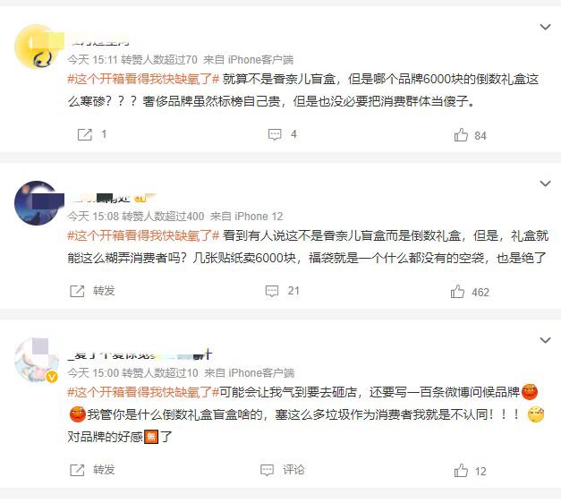 昨天,连续两条热搜将法国品品牌香奈儿送上风口浪尖:一名博主录制了号称“限量1000套”、价格6000元的香奈儿礼盒开箱视频,结果开出一堆小样和品牌相关纪念品,让不少网友大呼“这是在割韭菜”“不是品牌的作风”。
