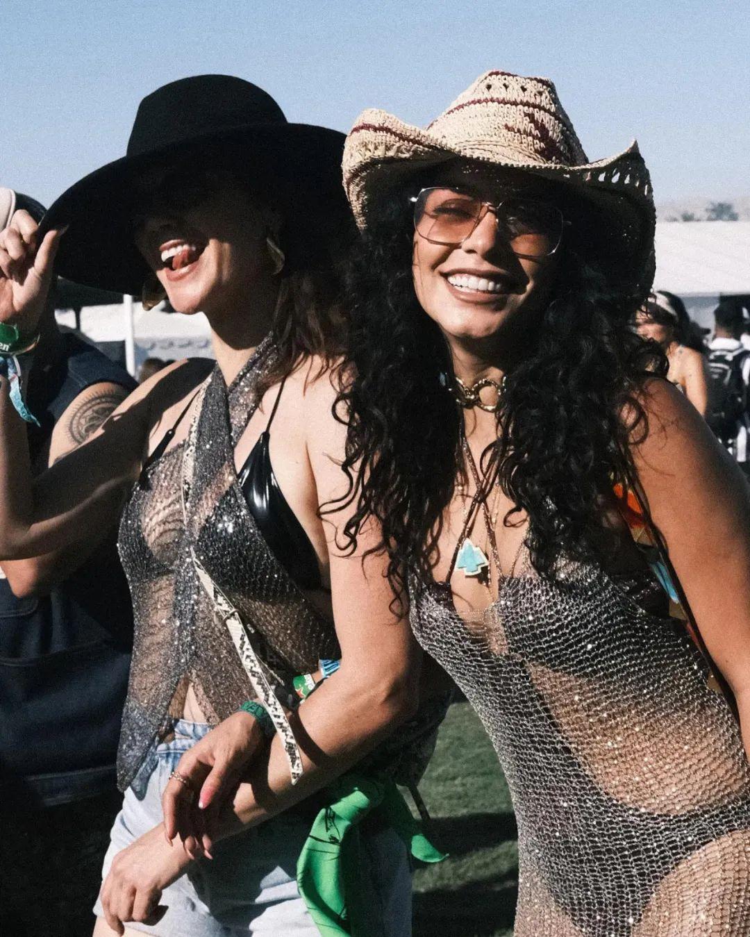 Coachella在科罗拉沙漠中的Coachella峡谷中举行,西部风情当然也在穿搭中展露无遗,牛仔帽和牛仔靴成为了常见的搭配选择。