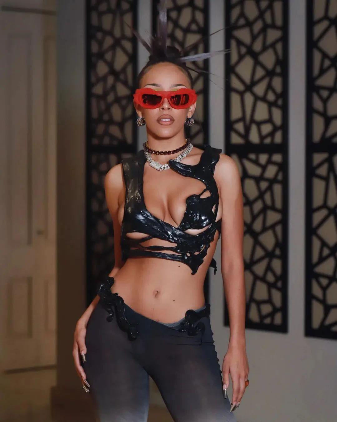 Coachella说是辣妹们的穿搭指南也不为过,把Coachella 舞台开成演唱会的豆荚猫Doja Cat延续一如既往的热辣风格,熔岩上衣大胆前卫,极具视觉张力▼