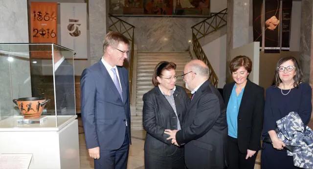 德国明斯特大学考古博物馆馆长把双跑人双耳古陶杯移交归还给希腊考古博物馆的现场照片