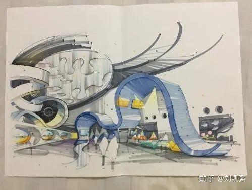 不要投机取巧想着碰运气!!!第一年的我就是抱着这种侥幸心理结果栽进了坑里,方案里曲线直线肯定是都要涉及,但是每一个方案一定要好好的考虑它的形态,主体和其他装置的呼应,不可为了求方案数量而简单略过,仔细想想每一个设计的形态可通过变形如何切题。