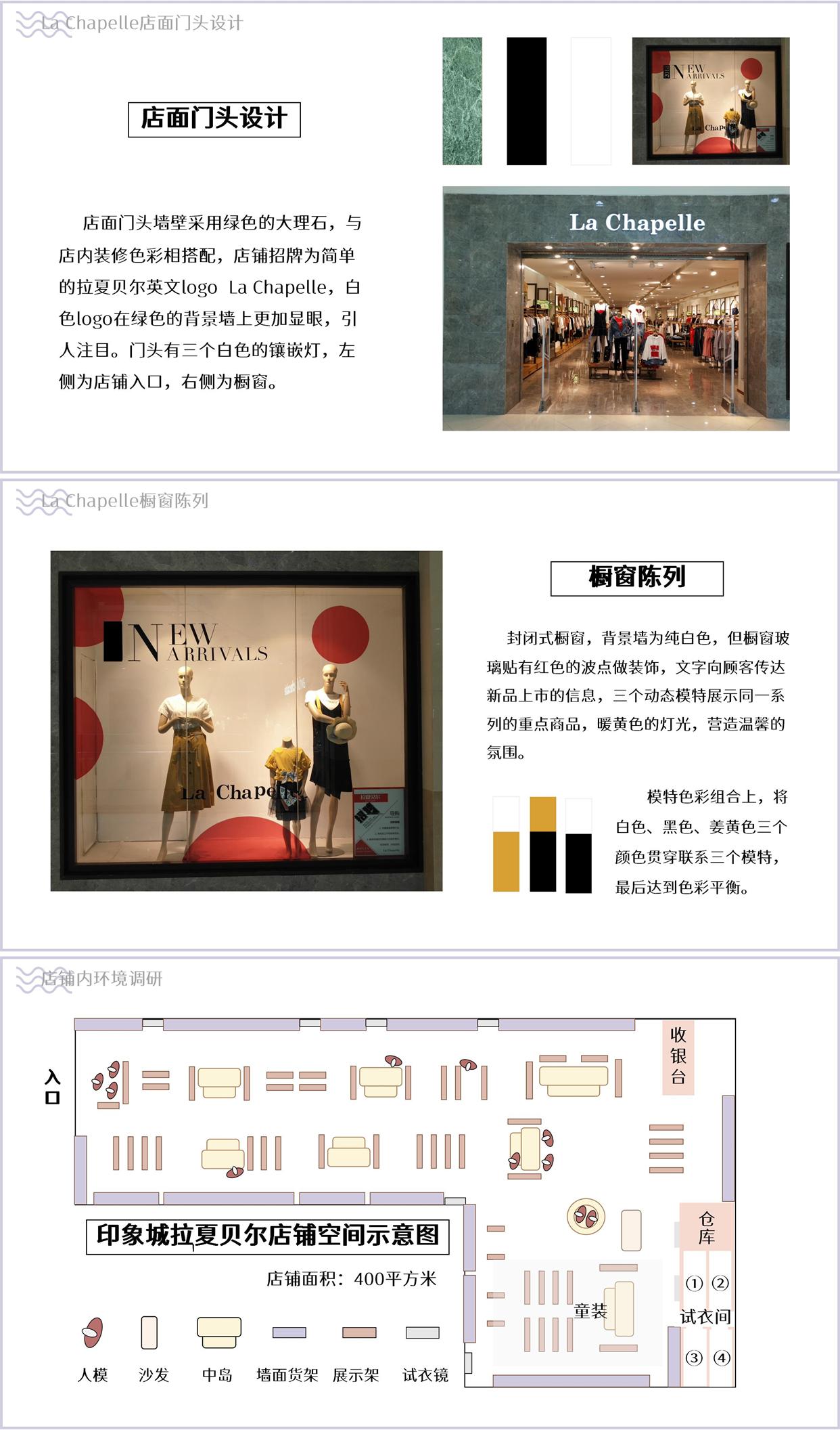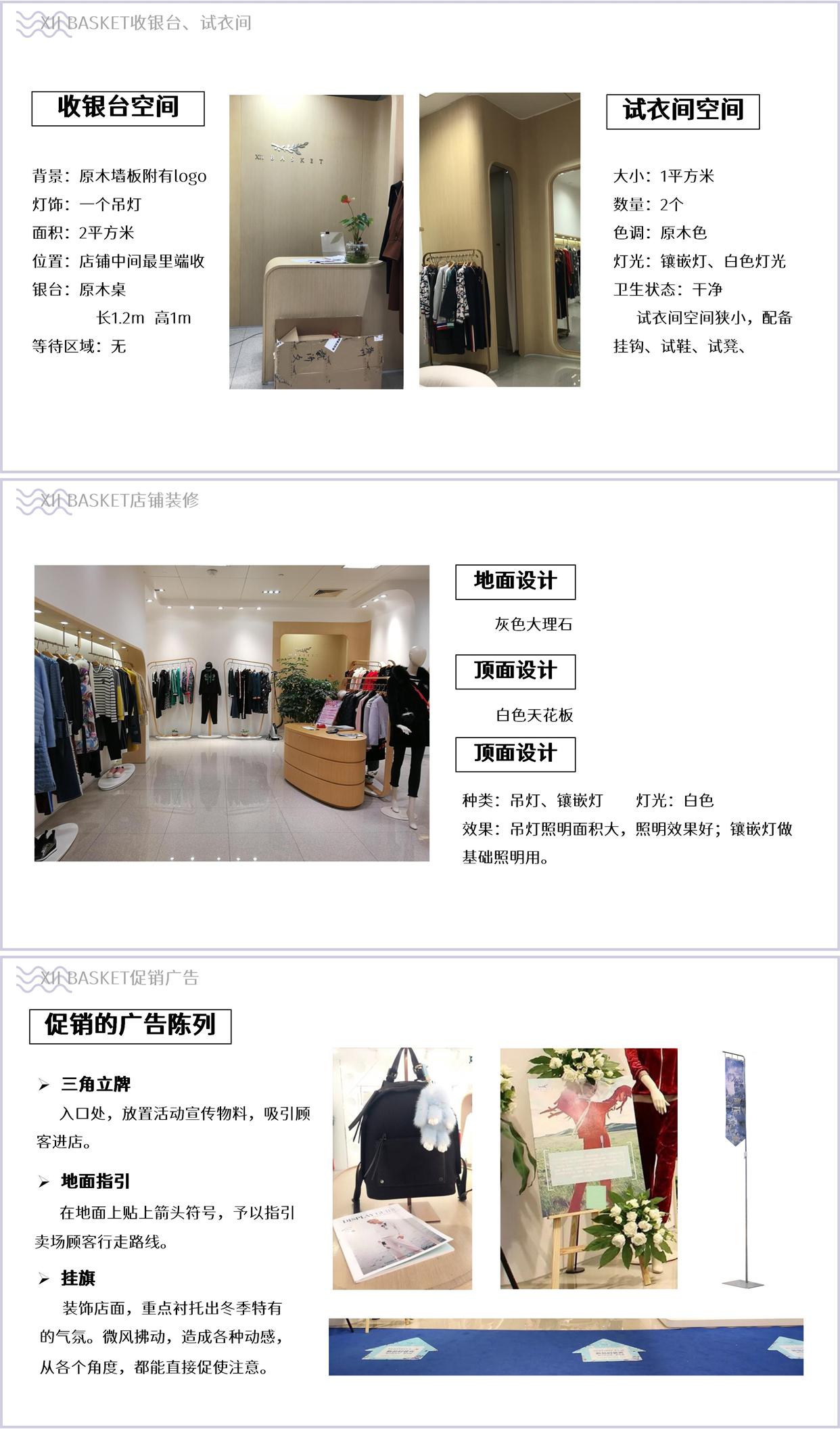 调研内容包含:品牌信息、店面门头设计、橱窗陈列、空间布局陈列、店铺顶面、地面设计、店内灯光设计、试衣间空间、收银台的整体空间、促销的广告陈列等等。