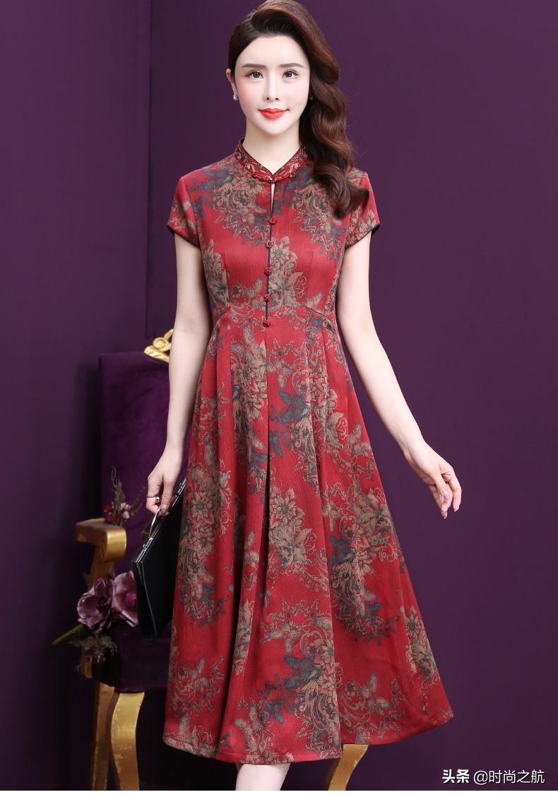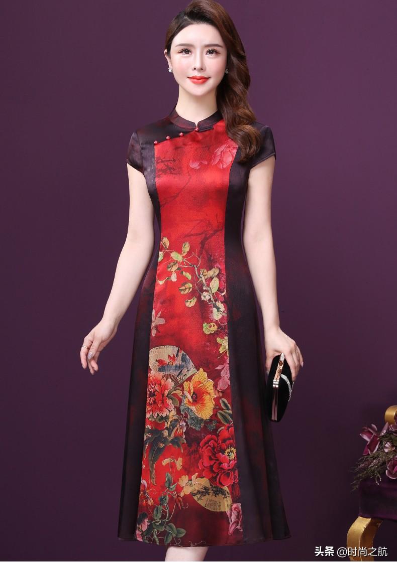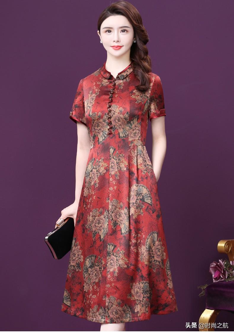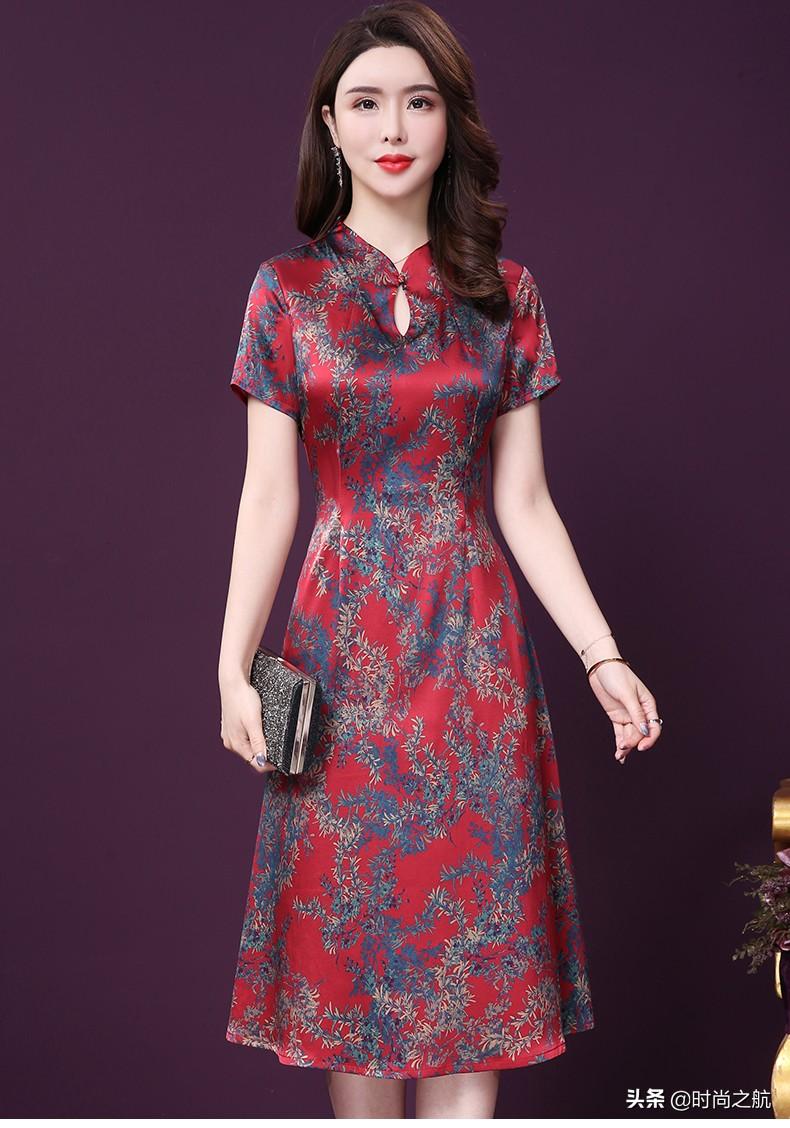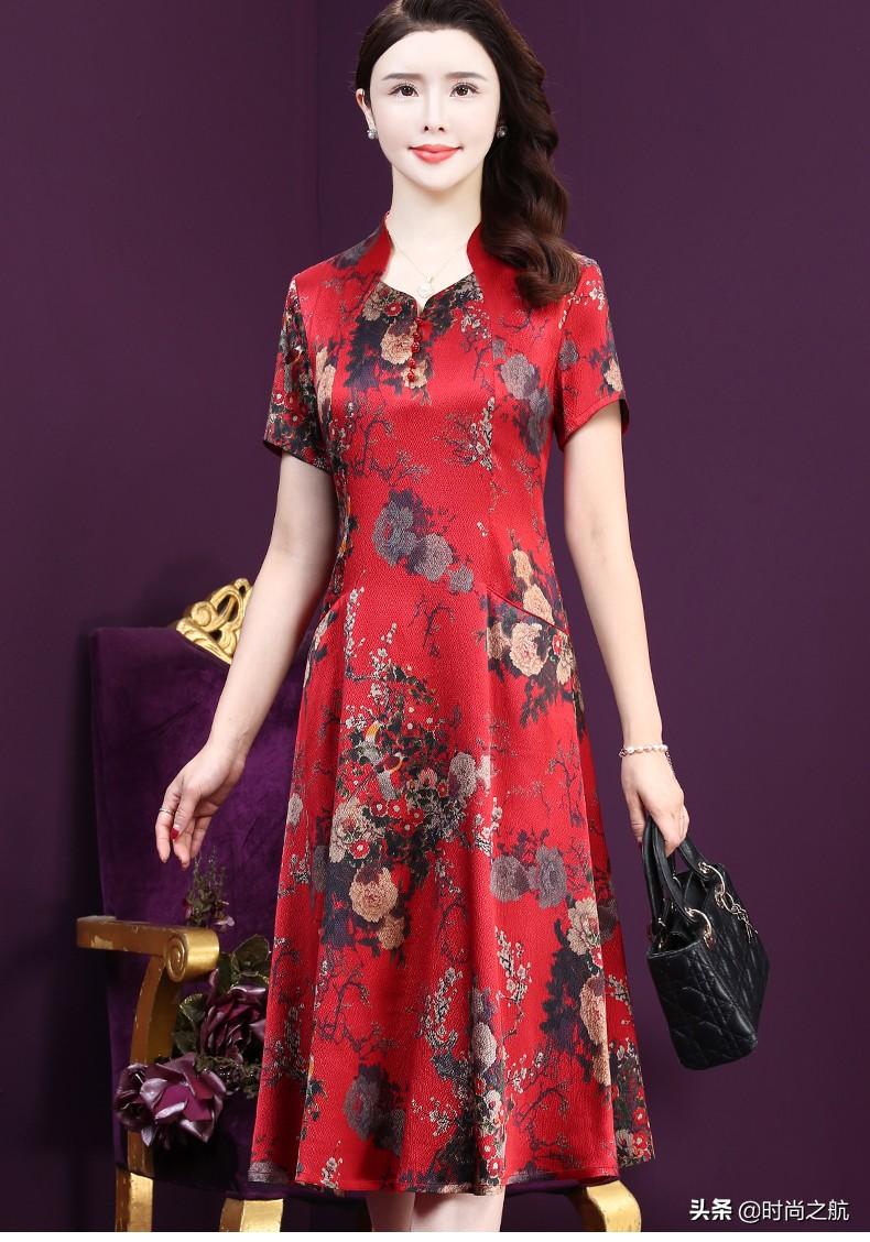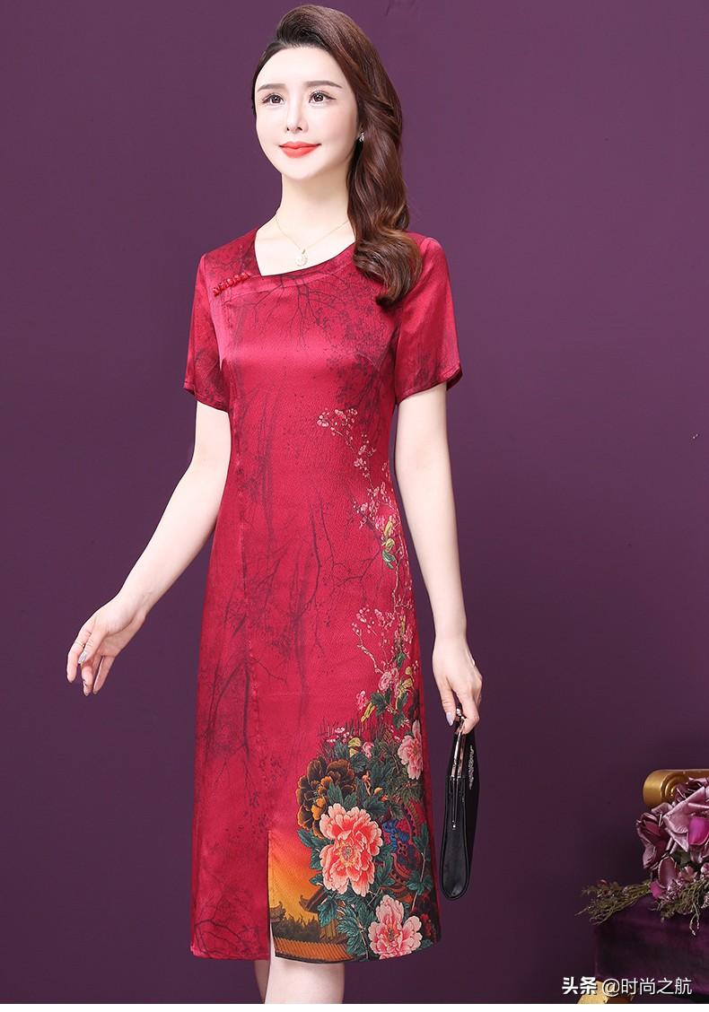 中国风妈妈连衣裙,改良旗袍桑蚕丝大码裙子