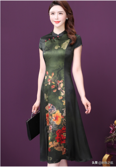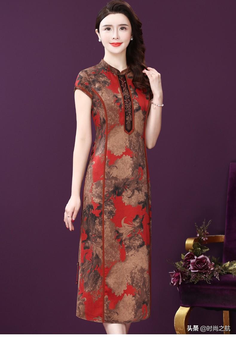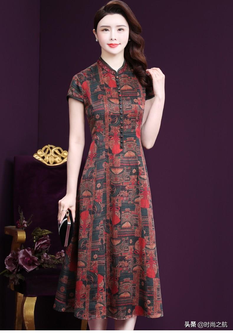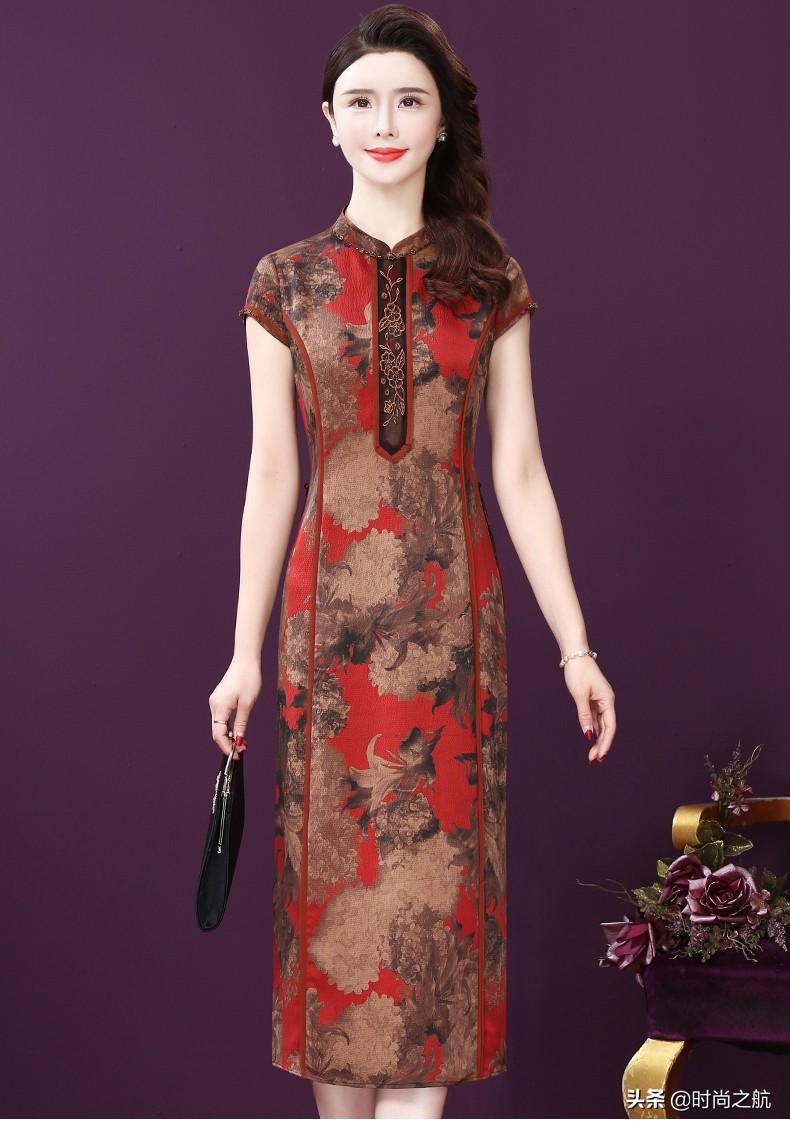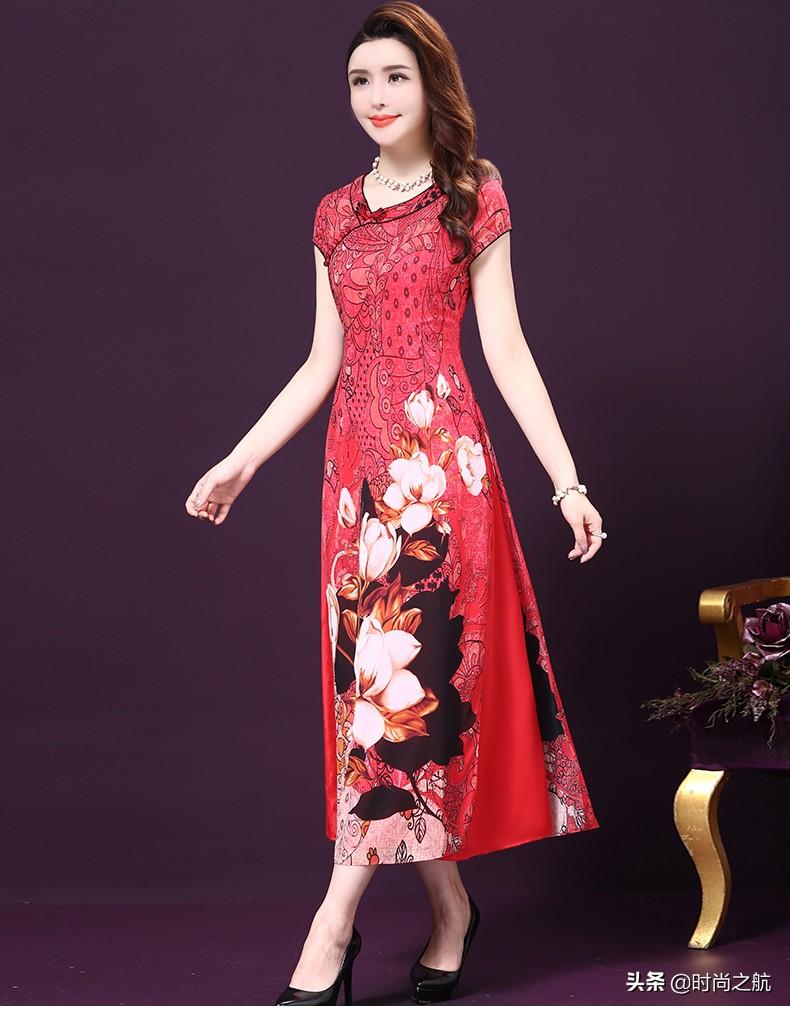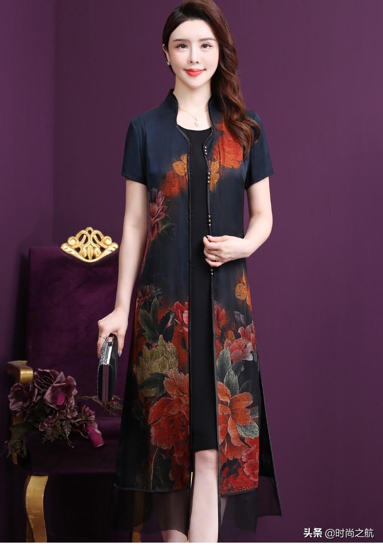 中国风妈妈连衣裙,改良旗袍桑蚕丝大码裙子