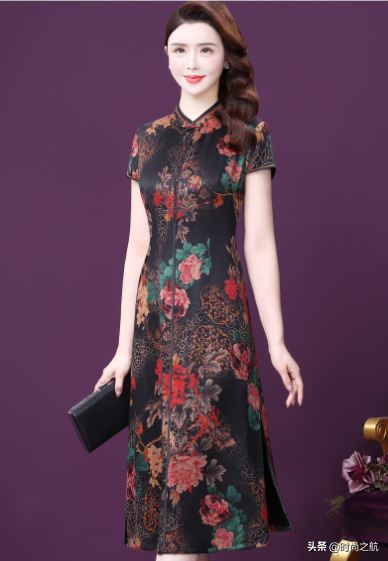 妈妈香云纱连衣裙,中国风端庄,印花真丝一步裙