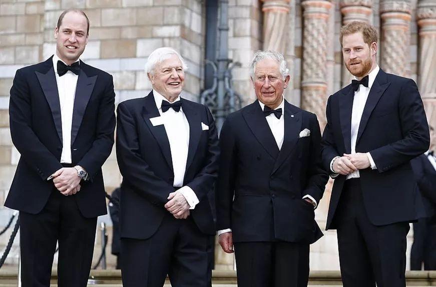 他们是查尔斯王子和他的两个儿子,“3娃奶爸”威廉王子和“预备奶爸”哈里王子。三人穿着清一色黑色礼服,参加网飞的纪录片《我们的星球》首映仪式,网友觉得站一起还蛮帅的呢~