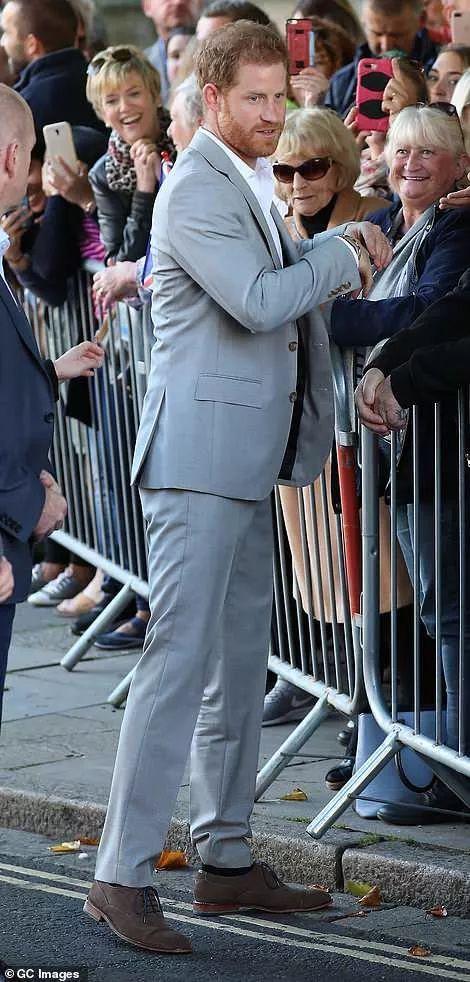哈里王子这次一个人现身,选择了深蓝色西装,搭配淡蓝色的领带,和女王的外套是一个颜色,不知道是巧合还是特意选择的,显得很有心。
