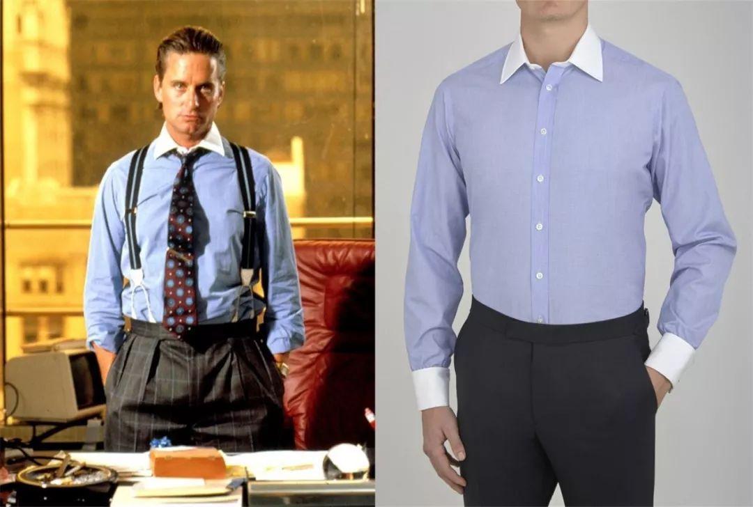 电影《华尔街》里,迈克尔·道格拉斯的角色便穿着这款白色经典T&A领衬衫,官网售价和007那件一样,看起来是不是蛮有大老板feel?