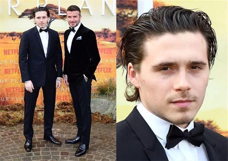一起参加活动的,还有其他名人明星,比如同样是父子档出镜,穿着天鹅绒西装的贝克汉姆和他的大儿子布鲁克林。