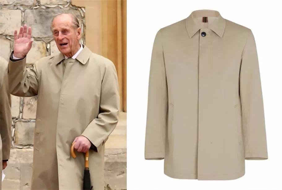 而菲利普亲王还有些大衣,来自于英伦品牌DAKS,手持王室认证,服务有百年了。比较类似的是一款叫Orrell的雨衣,款式很简洁,但亲王穿起长款还蛮有气场的~
