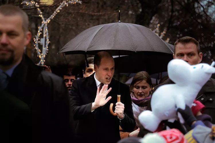 后,也许因为英国是个阴雨天气多的,所以王室男人手里,还少不了一件必备利器,那就是一把优雅的伞~