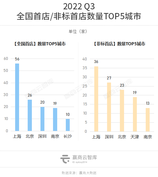 值得一提的是,上述140家首店中,全国首店为19家,超过长沙,仅次于上海、北京和深圳;非标首店为13家,同样杀入TOP5城市阵营。