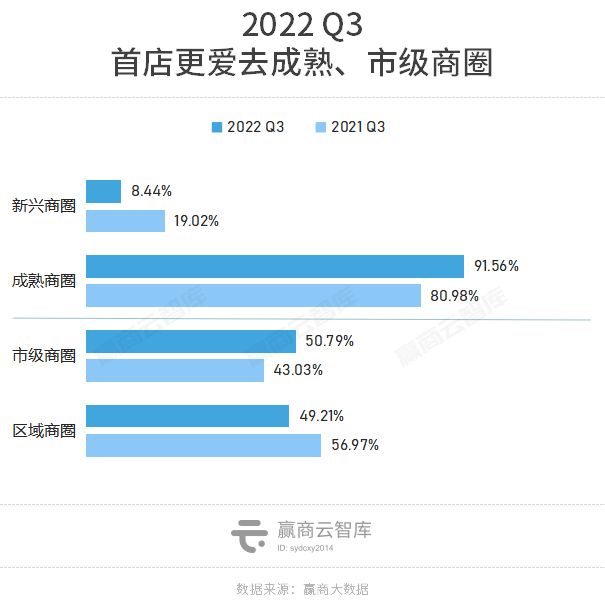横向对比去年同期,会发现,今年3季度,首店们在成熟、市级商圈的数量占比皆有一定幅度的上升,前者增加了近10%至91.56%;后者则升至近半。