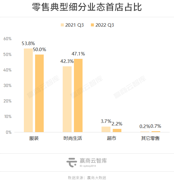 3季度,零售业态中时尚生活首店占比大涨,从42.3%飙升至47.1%,热度持续走高。