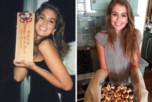 尤其是女儿Kaia Gerber,继承了妈妈的颜值,一些角度的照片和年轻时候的辛迪实在太像了。