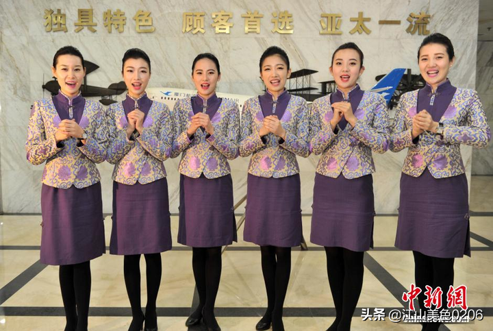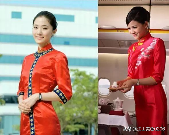 华夏航空并不是海航控股航司,不清楚为什么华夏航空的旗袍制服和海航的一样(中间乘务长所穿旗袍不是)。