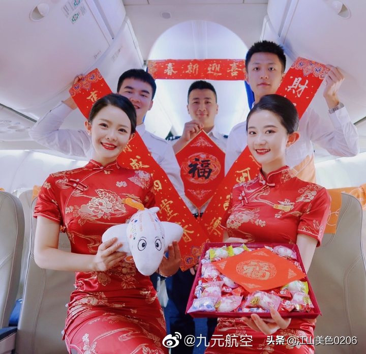 九元航空上一代节日款旗袍制服,感觉和新款差远了。