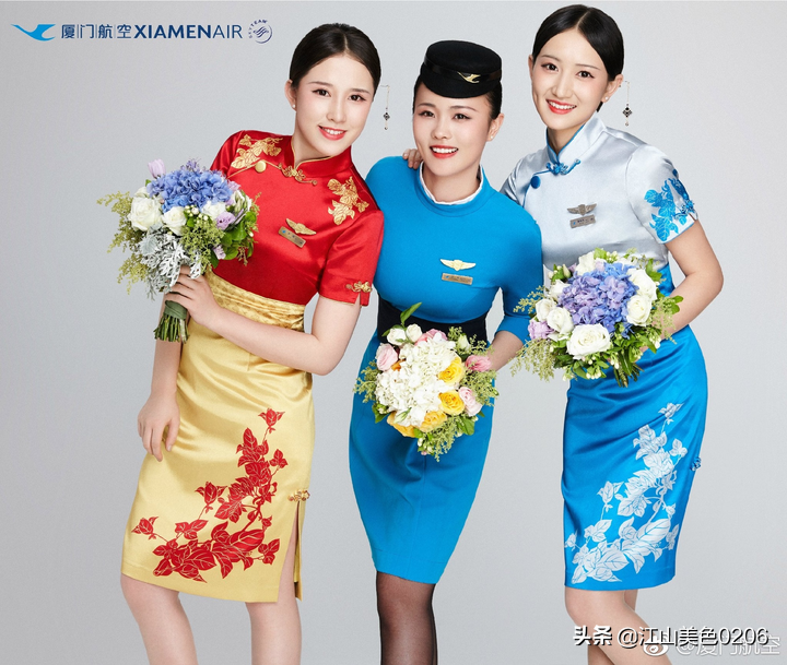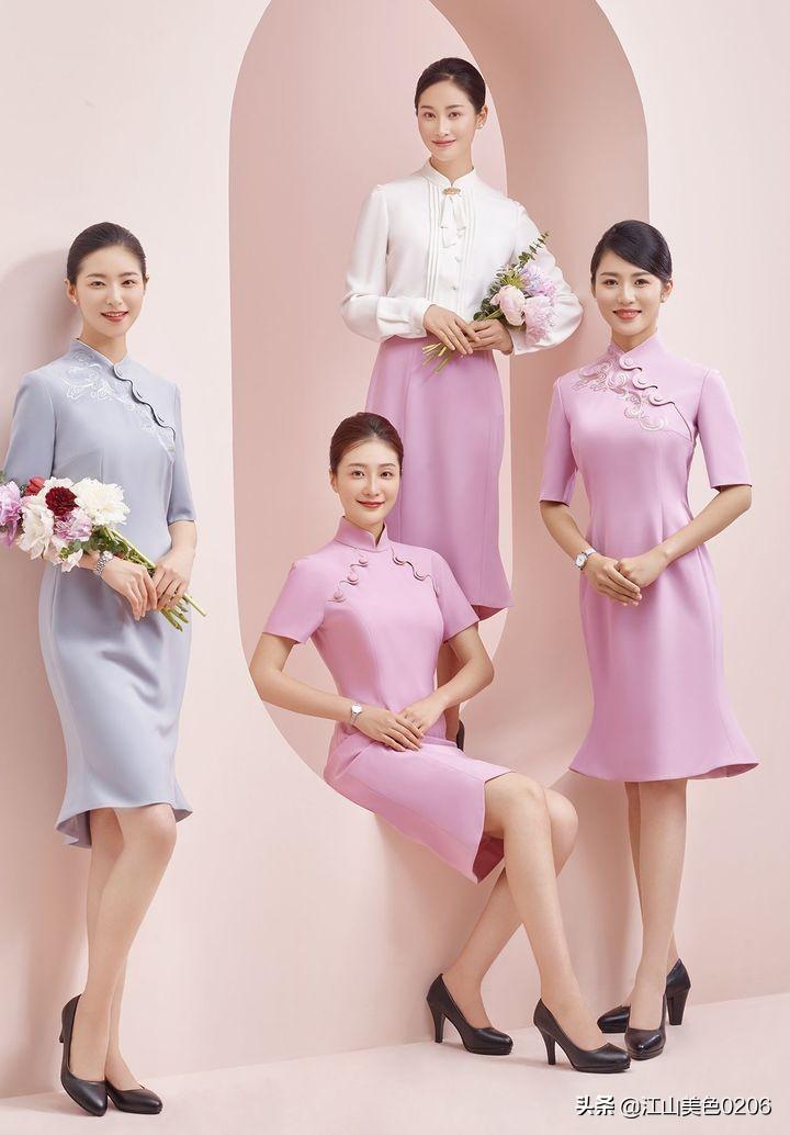 青岛航空旗袍制服款式众多,空姐可以根据自己的喜好选择。