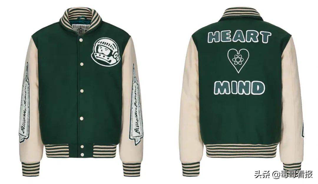 但随着潮流发展,经典棒球夹克的特征逐渐模糊化,毛呢皮袖变成棉质、尼龙等材质,袖口领口底摆的设计也逐渐简化成纯色,按扣也在部分款式中换成了拉链,“灵魂”字母补丁贴也被拿掉。