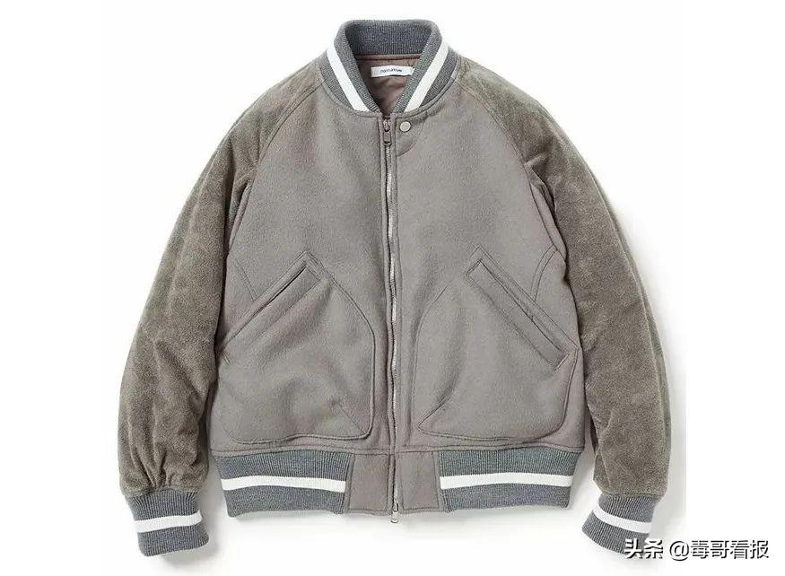Beams 旗下多个品牌每年都会推出棒球夹克,除了棒球夹克经典的罗纹领,来自 Beams Plus 推出青果领(左下)设计的棒球夹克,更富有学院气息,有着不一样的成熟味道。