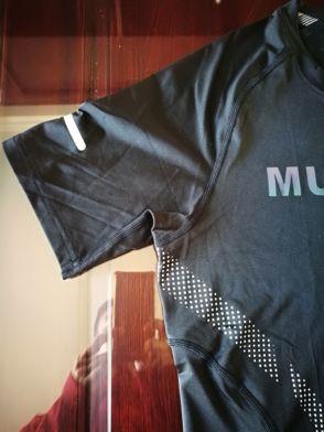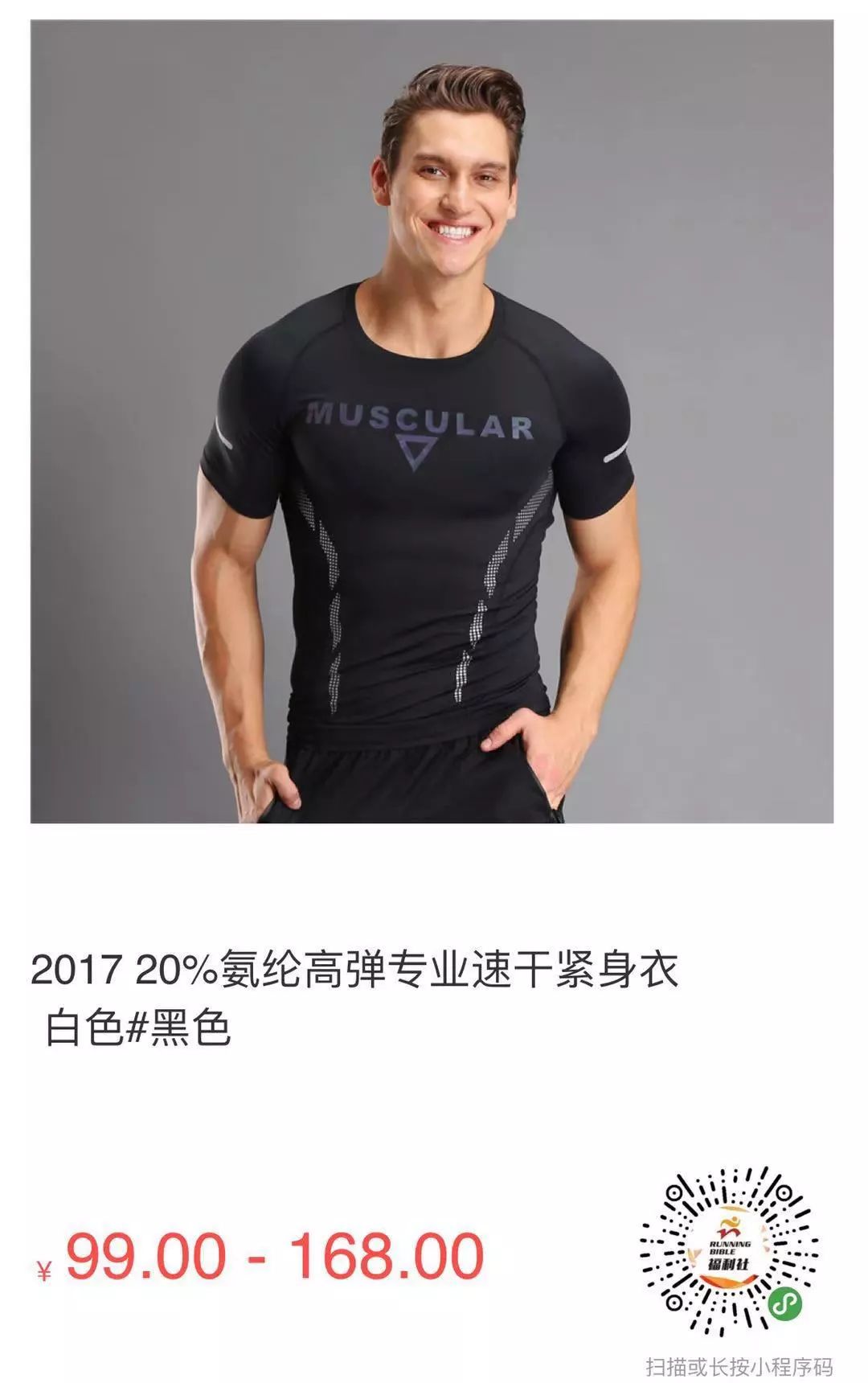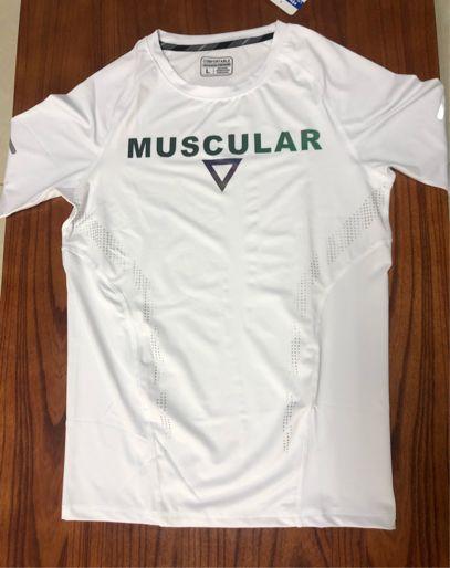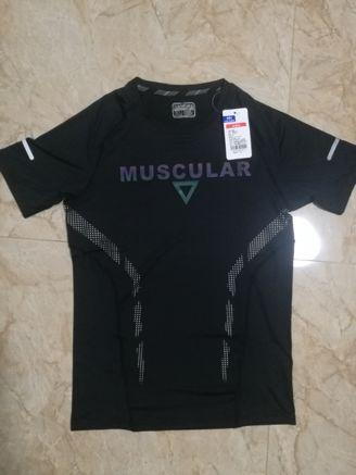 速干衣快递到手,怀着略微兴奋的心情拆开,从视觉上来看,第一眼即产生了好感,颜色是白色的,这也是我喜欢的,给人清新、阳光、活力的感觉,手臂有银边条、胸前有“Muscular”字样和银点斜纹设计,背面纯白,夹有银边不规则拼纹。随即上手,手感上来说,感觉较为柔软,弹性也很好,不愧为专业级的紧身衣,与我之前买的NIKE紧身速干衣对比来看,Nike柔软度略好,弹性则略差。查了一下这件衣服的具体产品信息:面料20%氨纶高弹,80%涤纶,属于弹性和透气性较好的面料。