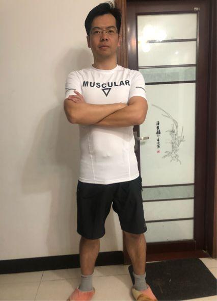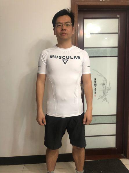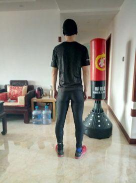 本人身高170CM,体重70KG,平时运动服穿着L码。速干衣穿上身,果超棒,立体紧身,衣料贴身舒适,感觉柔软适度,没有多余松垮的地方。小情人给我拍照时都说帅帅的,还要我摆各种Pose(见上身图,请自动忽略本人小肚腩)。