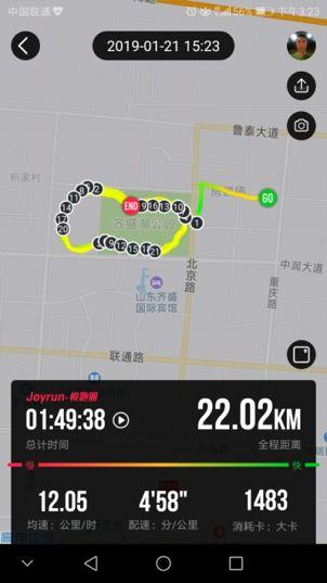 第二天,下午1点至3点跑步22公里,本来想跑30公里左右的,但是手机没电了,只能遗憾放弃。室外气温8度,微风,空气质量良。