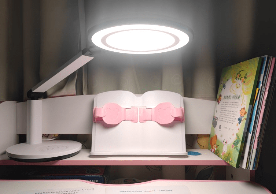 孩视宝VL225B-1采用的是双发光的模式,也就是通过环形扩散板提升光源的边缘照度,再结合中心的面光源进行主要照明,而相互结合起来就能打造出比较舒适的纯净光线,并且结合后的光源面直径达到20.5CM,提供了约1.8米的照明距离。得益于双发光的设计,照度符合了国标AA级标准,显色值达到Ra95。并在功能方面支持智能感光、定时休息、自然睡眠、小夜灯的多项小功能。