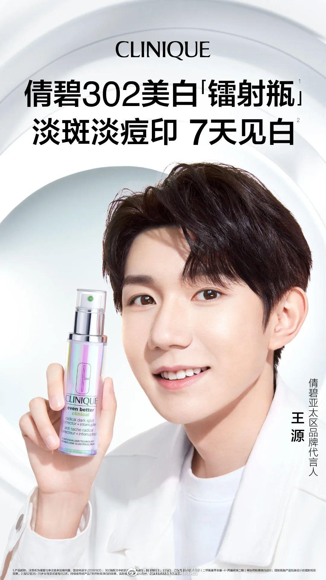 众所周知王源的白也一直是粉丝热议的焦点,除了拥有好看帅气的面容之外,而白似乎也一直是很多路人见到王源时的repo之一,而粉丝们也有时也会亲切的拿王源的手和工作人员的手做对比来打趣,王源又细又白的手不知道又有谁不想要去摸一把帅哥呢,而这正好也和倩碧主打的产品302美白镭射瓶相呼应,这样的组合怎么能不让人惊喜呢。