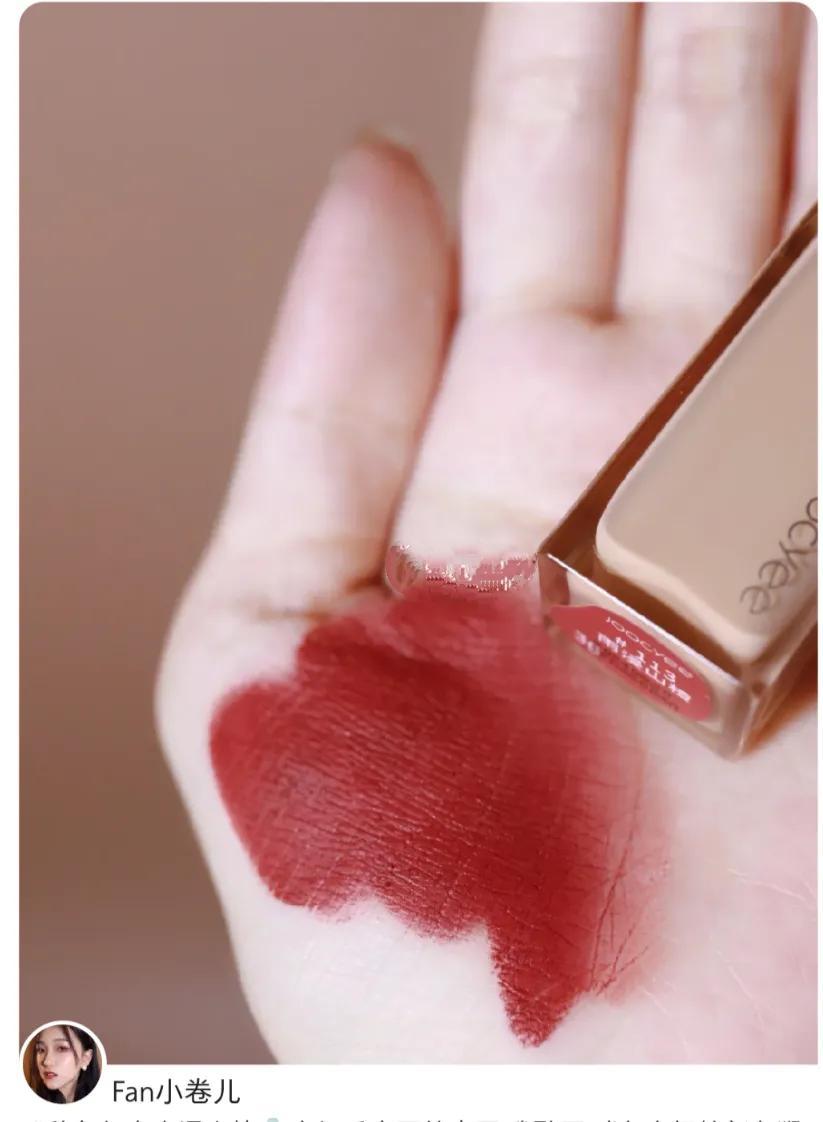 浓郁的复古红棕色,棕色调刚刚好,上唇一点都不深,特别显白,适合黄黑皮女生。