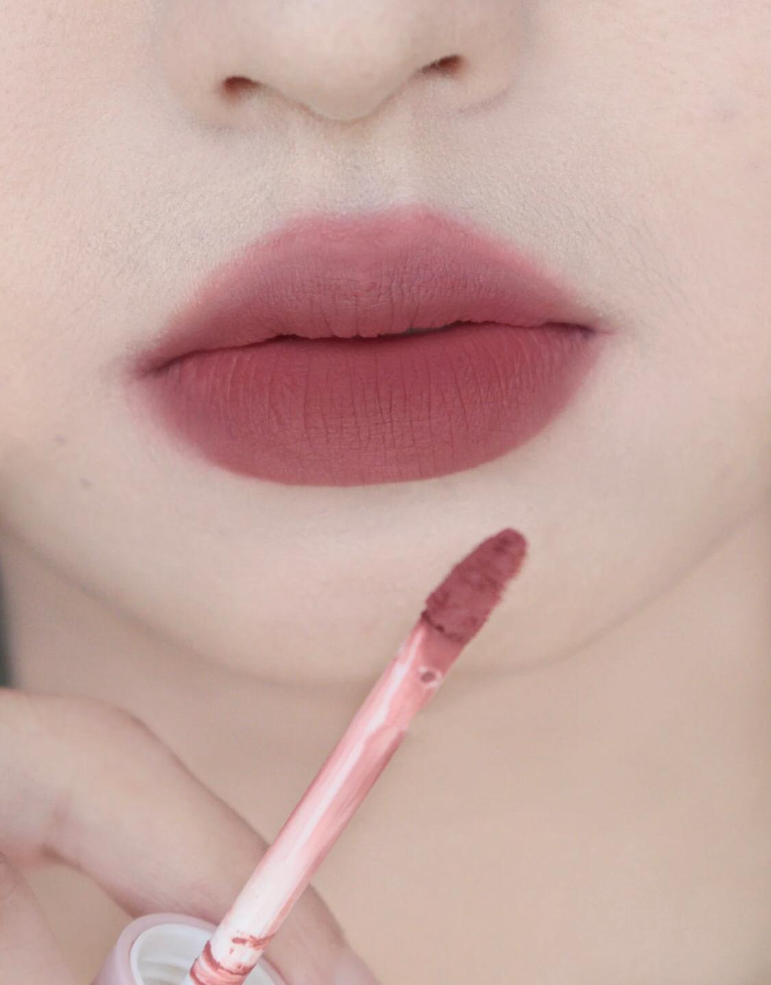 它们家的唇泥的质地也做得很不错,粉雾感很强,与低饱和的色调搭配在一起,对于凸嘴的姐妹们也很友好,即使是厚涂也不会让嘴唇有飞出来的感觉,在视觉上也会弱化嘴凸的果。